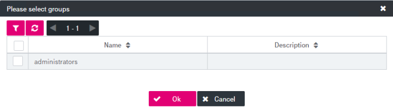 Select one or several groups from the list (general ImageMaster filtering is available) and click Ok. The groups will be added to the list.