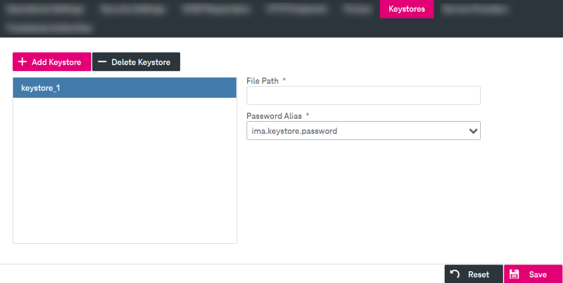 Open the Crypto tab and select the Keystores sub-tab to display and configure the keystore settings.