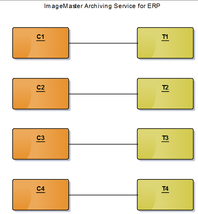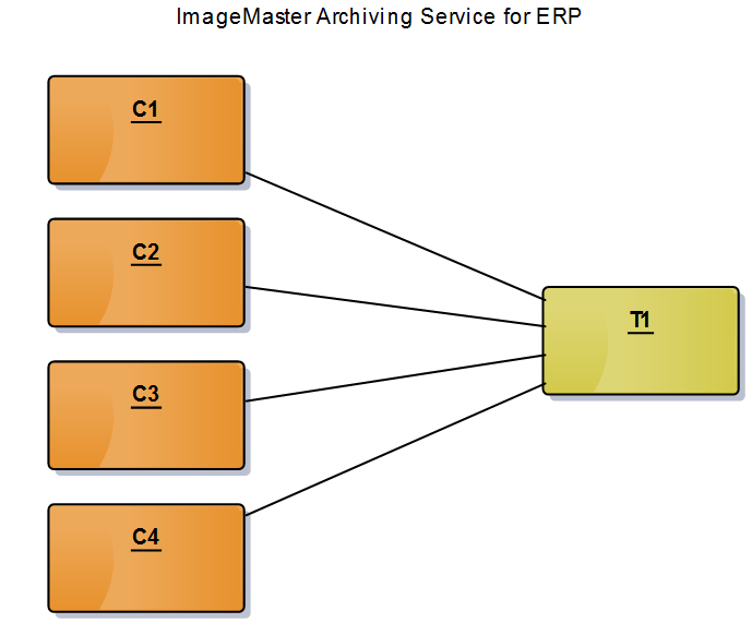 However, multiple content repositories can share one ImageMaster document type as well. For example, content repository C1, C2, C3, and C4 all use ImageMaster document type T1.