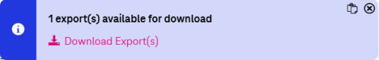 When the export is ready for download, the following message appears: