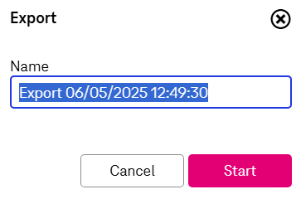 Exports are prepared asynchronously in the background. You can switch to another view while the process runs. Once completed, a notification with a link to download the files will appear in the upper panel. If you end your session before the process completes, a notification with a link will be displayed upon your next login, allowing you to download the generated exports.