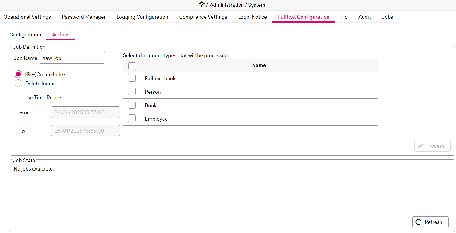 Figure 64: System – fulltext configuration: job state