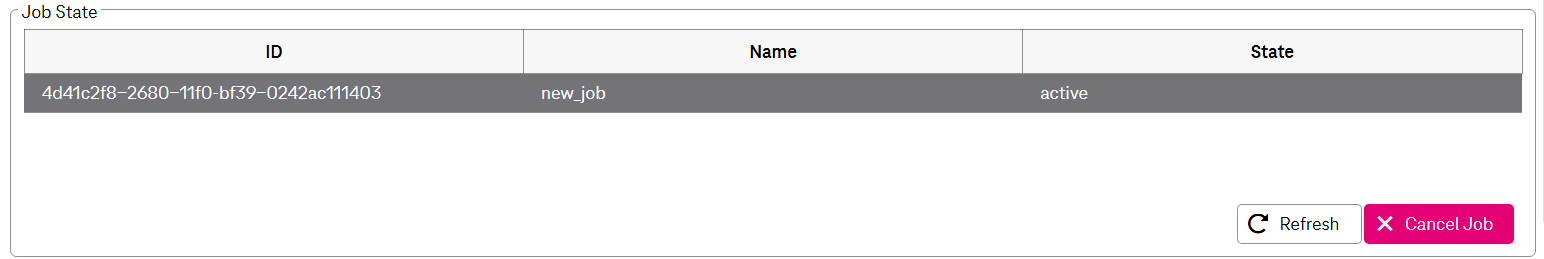 To cancel the job prematurely, click Cancel Job. You can update the state by clicking Refresh.