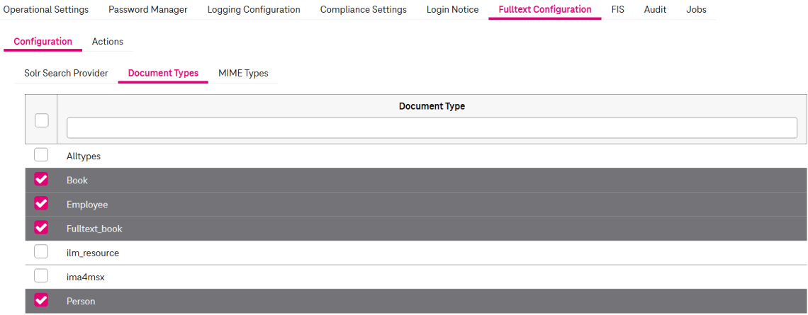 Figure 61: System – fulltext configuration: document types