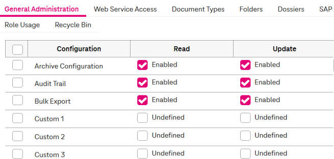 Table 37: Roles management – general administration permissions: configurations |