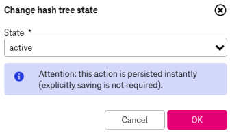 You can enable or disable a hash tree by changing the status. Select a hash tree in the list and click Change the state. The window with the supported options will be opened: