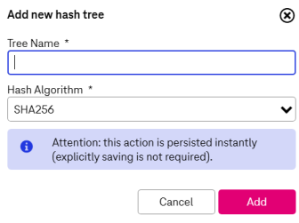 For a new hash tree, click Add New Hash Tree and specify the following parameters: