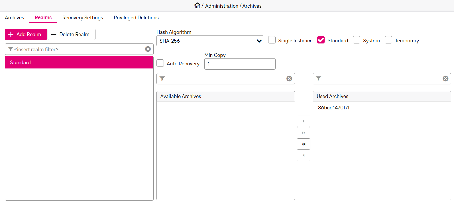 Click the Archives > Realms tab to compose realms and associate them with the archives configured on the Archives tab.