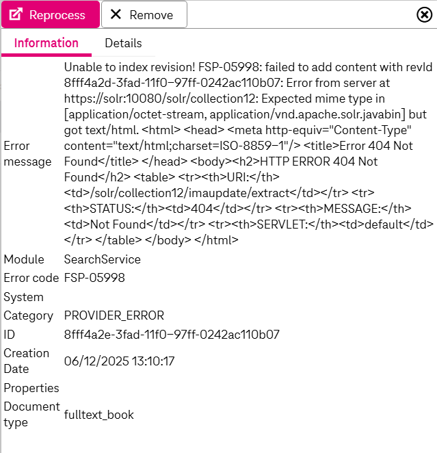 The Events functionality allows you to view and reprocess events of other modules (e.g. ImageMaster Content Services for SharePoint, full text indexing, etc.). The default set of modules for which event reprocessing is supported can be enhanced by customer specific extensions.