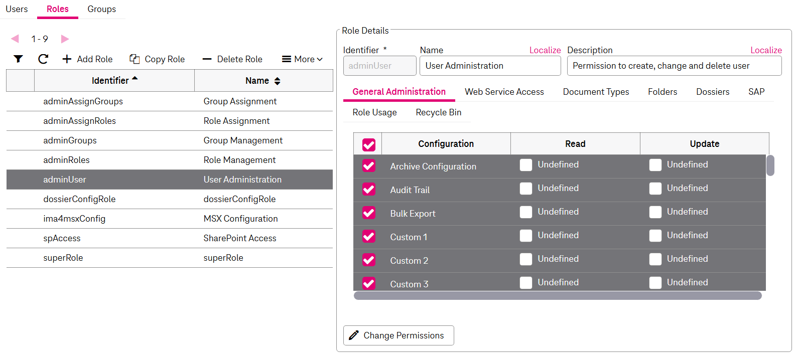 A basic distinction is drawn between the following permissions to configure roles: