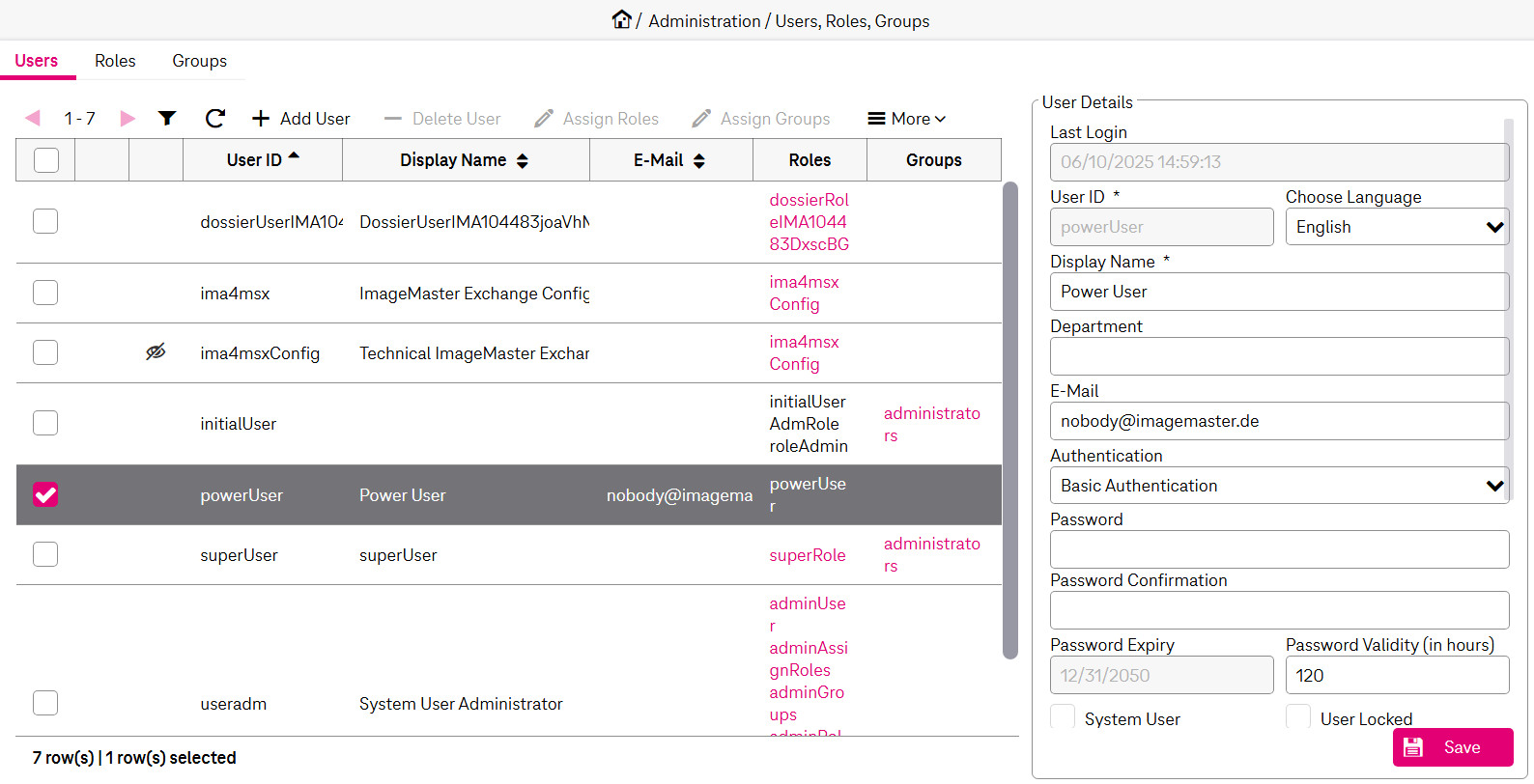 Click the Users, Roles, Groups > Users tab to configure the properties of the users. The shown “License Type” is read-only information according to the User license check.