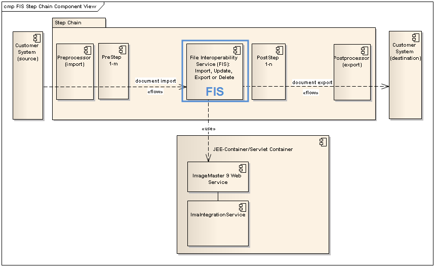 FIS internally relies on the services for archiving, querying, retrieving, and deleting as described in the Integration Service manual [SM IS]. The Integration Service, however, can be deployed on a separate platform. FIS configuration is handled by the AdminClient, see section FIS configuration in [UM AdminClient], yet specific connection parameters in console mode may also be defined in a configuration file. This documentation covers the file system and command line interface with related maintenance topics.