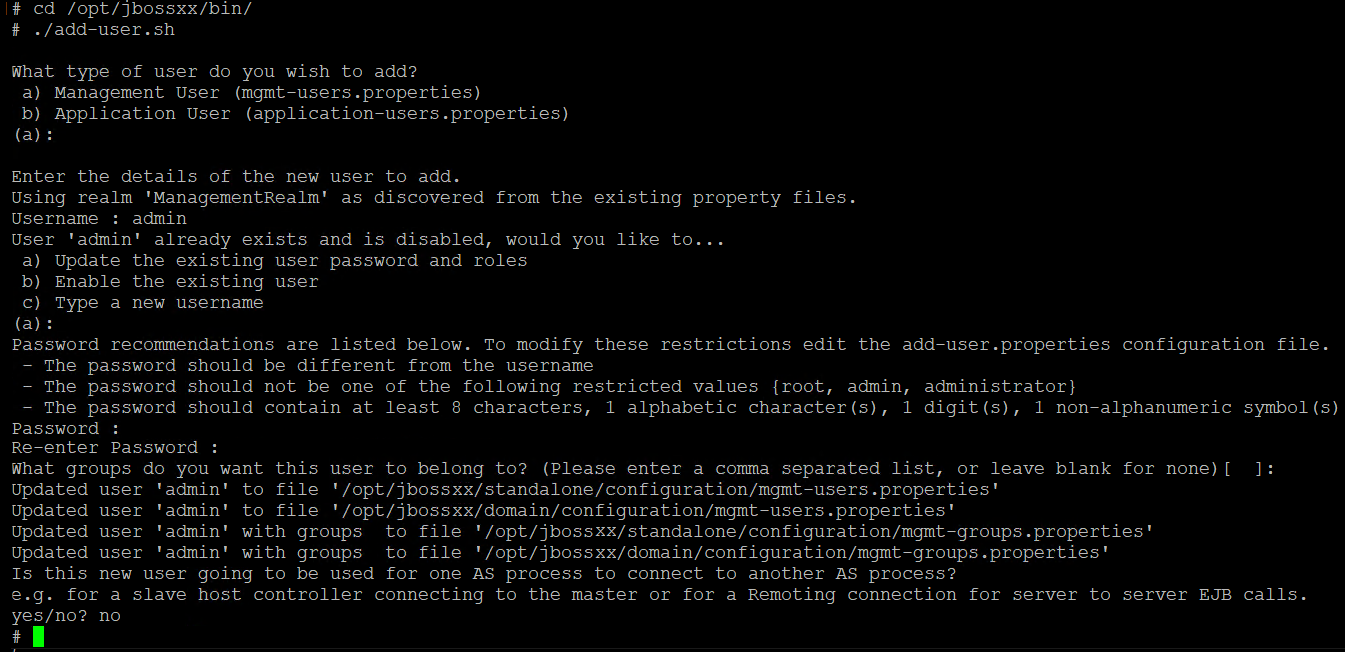 Figure 404: WildFly / JBoss – adding a new user via command prompt